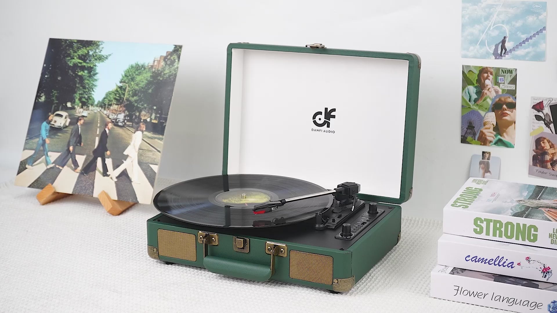 Enjoy the authentic sound of vinyl records anywhere with the TE-2021. Featuring Bluetooth 5.0 technology, this portable retro suitcase turntable wirelessly syncs with smartphones and tablets, making it the perfect companion for vinyl lovers and vintage decor enthusiasts.