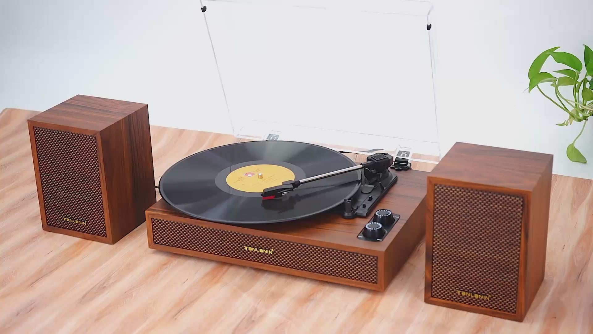 Set up is effortless with the included stereo speakers, delivering full, crisp, and dynamic sound. Whether you're relaxing in your living room or hosting friends, enjoy rich vinyl audio with depth and clarity from a separate speaker setup.
