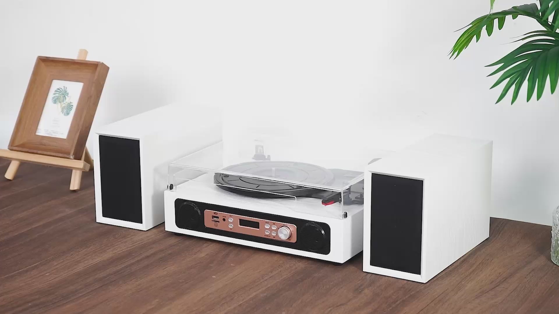 Enjoy rich, high-fidelity audio with a unique combination of built-in stereo speakers and external tweeters and woofers. The TE-2033B faithfully reproduces the warmth and depth of vinyl records, delivering transparent highs and full-bodied mids and lows. External speakers connect seamlessly via plug-and-play for flexible placement in any room.